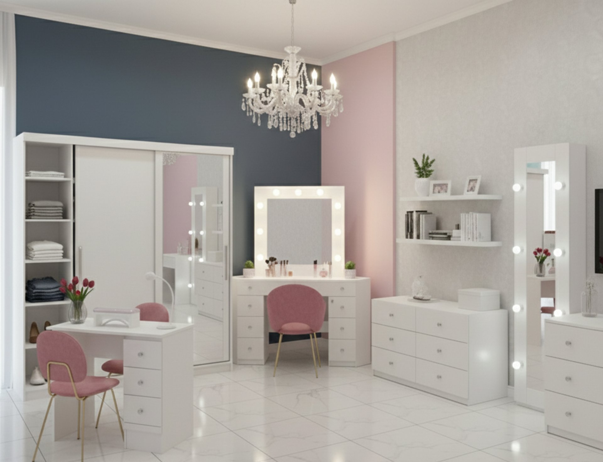 Fabricamos muebles de melamina blanca, espejos, mesas de maquillaje,